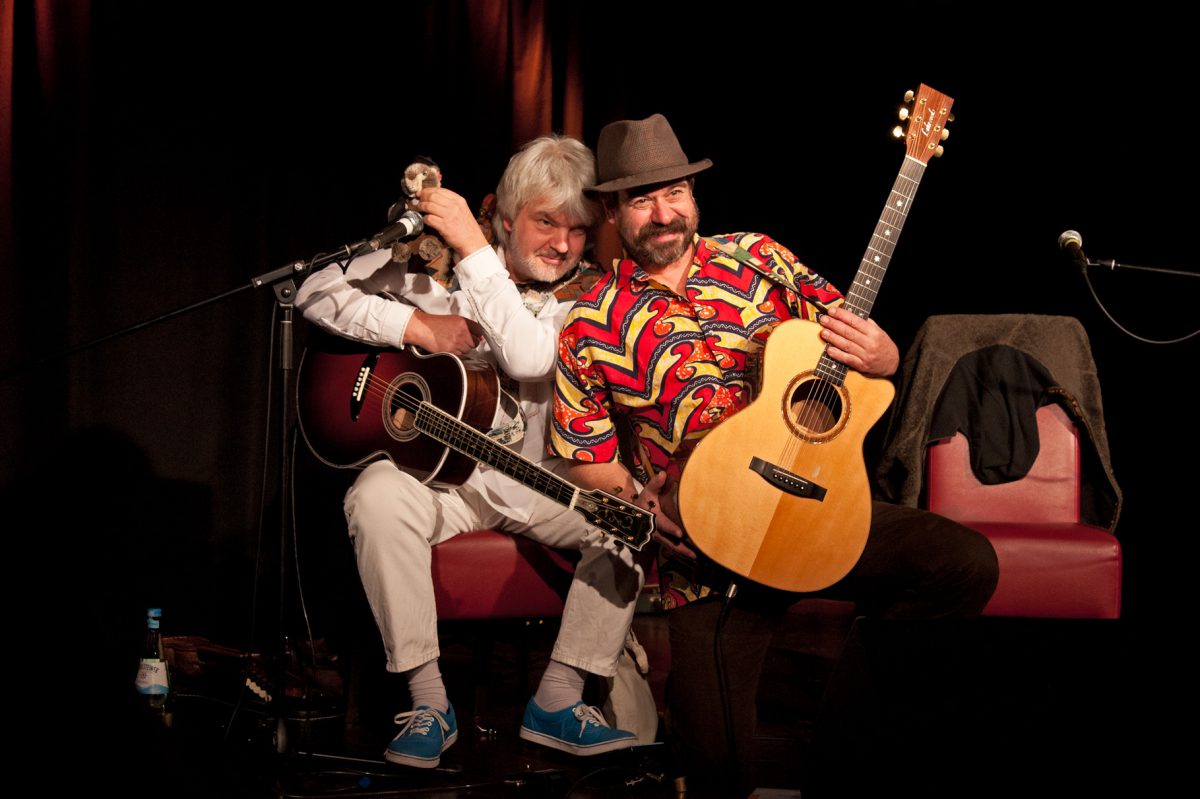 Dreieinhalb Jahrzehnte haben die Wolpertinger mittlerweile auf dem Buckel, doch ihr virtuoses Handwerk, der verschmitzte Humor und der permanente Kontakt zum Publikum lassen die Performance der beiden musikalischen Lausbuben unverbraucht wirken wie eh und je.